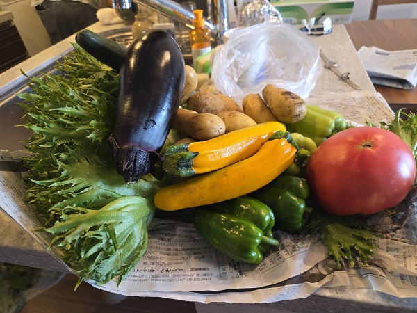 そして、1時間前に届いた朝採り超新鮮野菜。