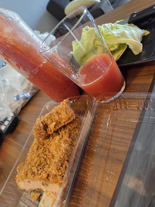 そんな殺伐とした話が乱れ飛ぶ中で、今日、筆者が大喜びしたこと。それは、厚真(あつま)の親戚からの超新鮮野菜。都会では絶対味わえない、野菜の味。今回特にうれしかったのは、「幻のトマトジュース」と筆者が絶賛している、手作り(手絞り)のトマト100%。それ以外なにも余計なものは入っていない。トマトの本来の味を、丁寧に絞り出している。どれだけ時間を要することか。有難い。早速、とんかつを買って、トマトジュースと、シャキシャキ・キャベツだけの昼食。こんな贅沢なランチがあろうか。