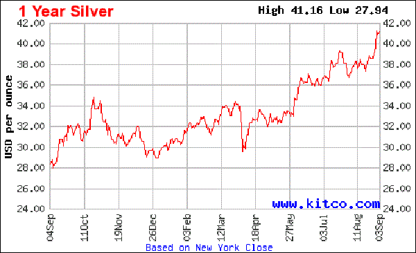 今日は、金・プラチナ・銀のKITCO1年価格グラフを並べた。