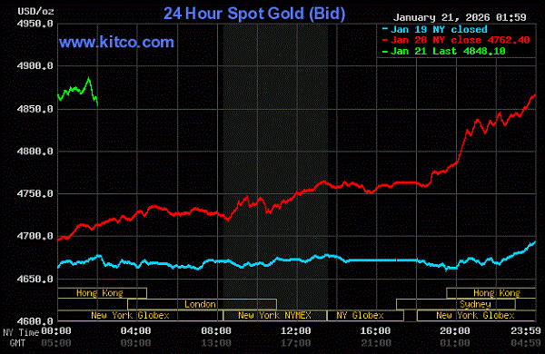 国際金価格は、KITCOグラフの示すごとく、4,800超え。