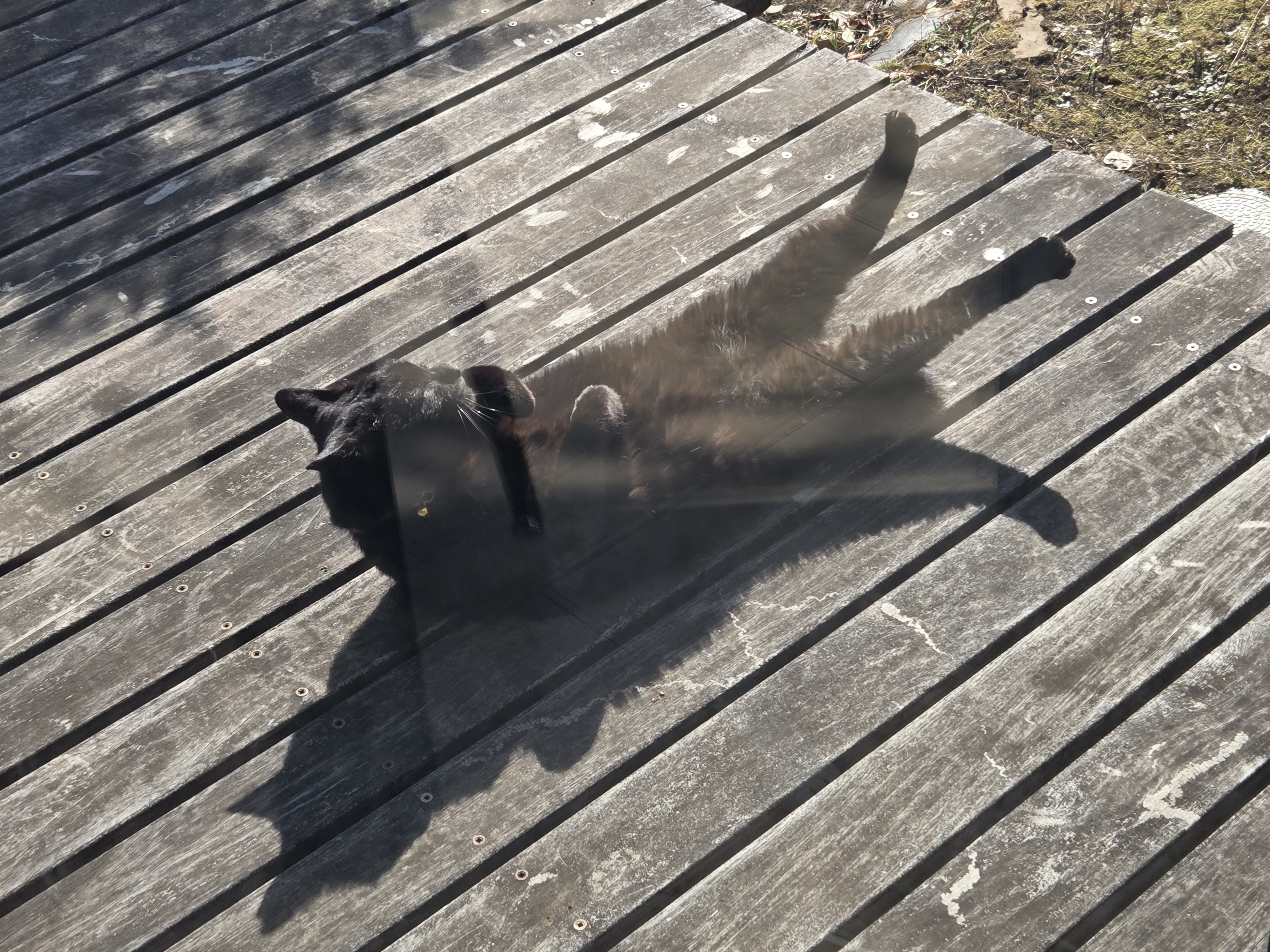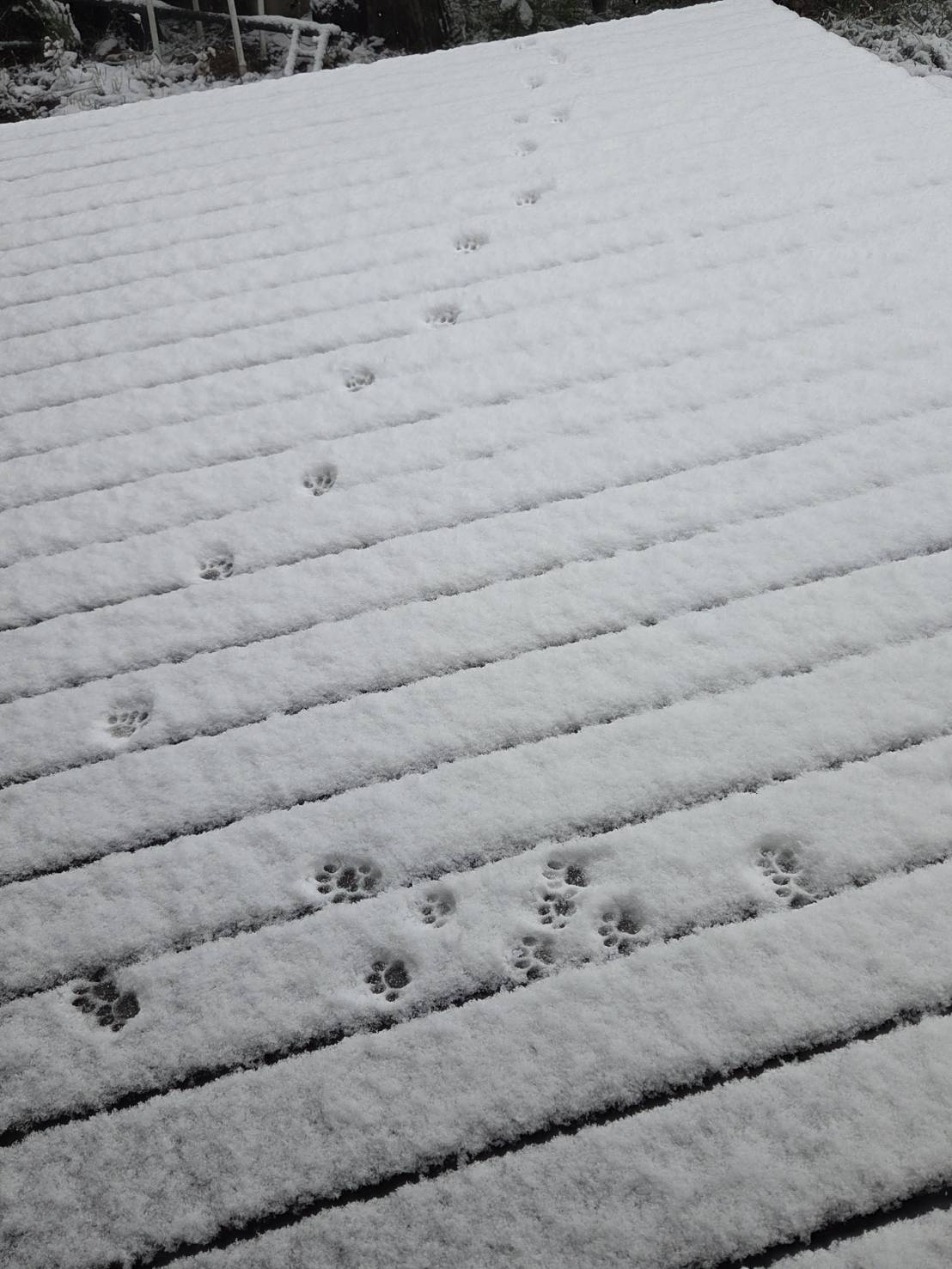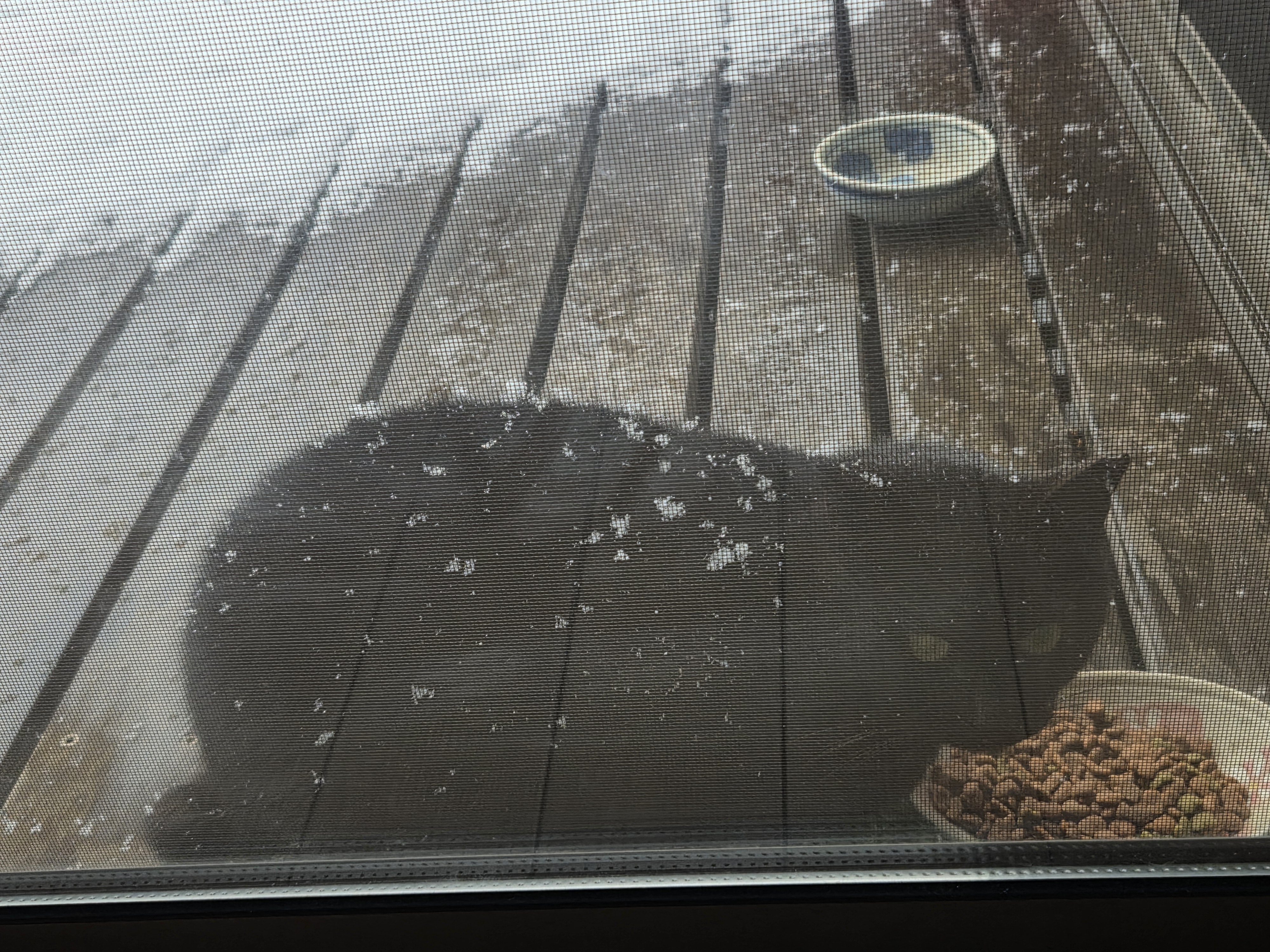 ニャンちゃん、雪の日と、快晴の暖かい日。対比が笑える。
