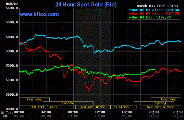 昨日の国際金価格は5,100ドル台で大きな値動きなく推移した。