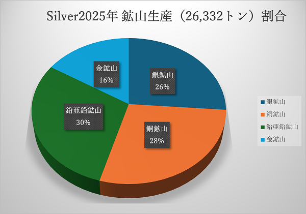 今後も激しい価格の動きが当たり前のように起こるマーケット環境だと思います。そしてこの「供給不足」はこの先も簡単には解決しないでしょう。というのもシルバー鉱山生産は、足りないから増やせるものではないからです。シルバーの鉱山生産で、銀鉱山の占める割合は26%だけです。残りの74%は鉛亜鉛鉱山、銅鉱山そして金鉱山の副産物として生産されています。副産物を計画的に増やすことはできません。そのため、いくらシルバーが足りなくても、価格が上がっても、シルバーを意味のある量で増産することはほぼ不可能なのです。